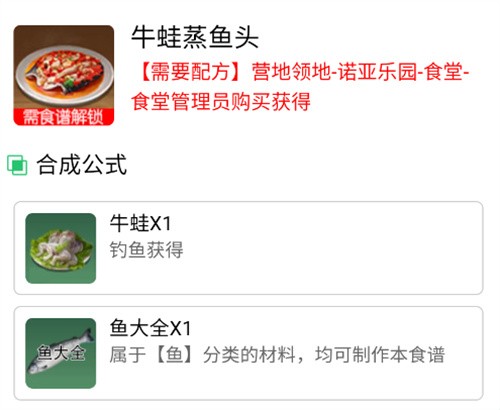 牛蛙蒸鱼头 :牛蛙*1 + 鱼内大全*1