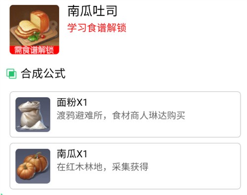 【提升血量】食谱配方汇总 : 南瓜吐司=面粉+南瓜