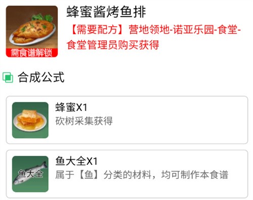 【伤害减免】食谱配方汇总: 蜂蜜酱烤鱼排=鱼+蜂蜜